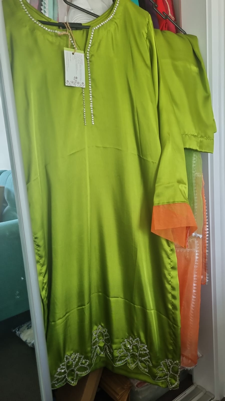 - Dry clean preferred to maintain fabric quality and embroidery