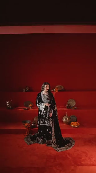 Elevate your festive style with this hand-embellished velvet outfit, designed for a regal and timeless look. Perfect for weddings and formal occasions.