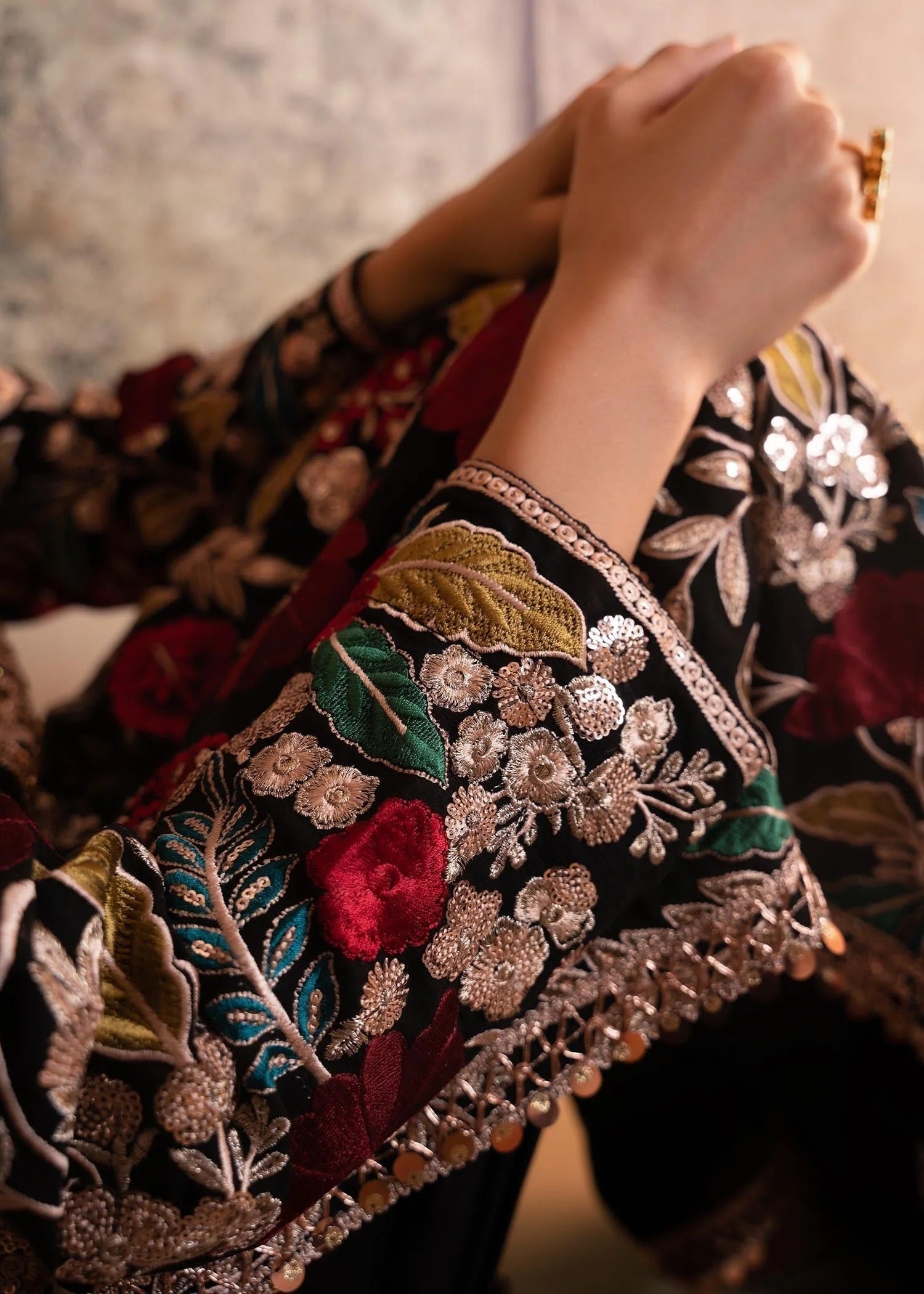 Elevate your festive style with this elegant 4-piece kurta set, designed in a timeless black shade. Crafted from premium chiffon, the long kurta features a graceful silhouette perfect for festive gatherings and parties. Paired with a matching bottom, embroidered dupatta, and a chic potli bag, this set blends tradition with effortless sophistication. Suitable for all seasons, this outfit is a must-have addition to your wardrobe.