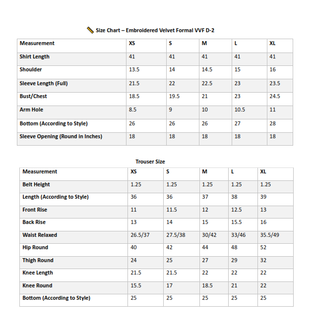 📏 Size Chart – Embroidered Velvet Formal VVF D-2