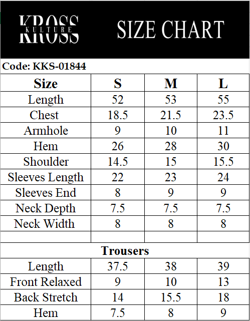 Package Includes: Embroidered shirt, with straight pants